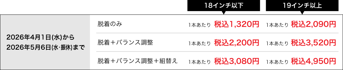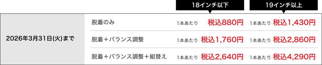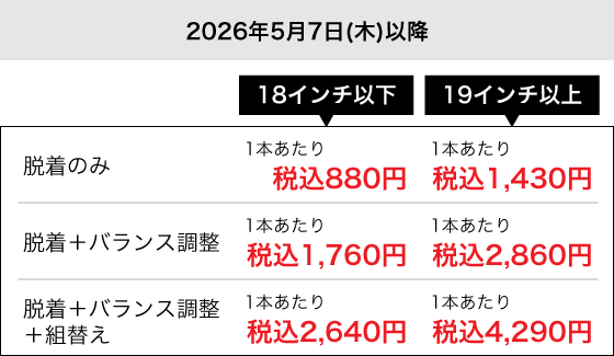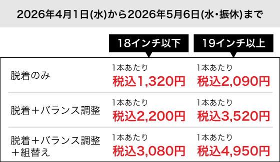 当店ではご購入済みタイヤへの交換作業工賃を期間によって変動させていただきます。